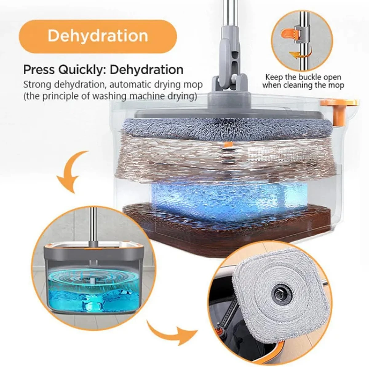 Clean and Dirty Water Separation System : You Will Always wash the mop with clean water, you can clearly see that the dirty water and clean water are completely separated.