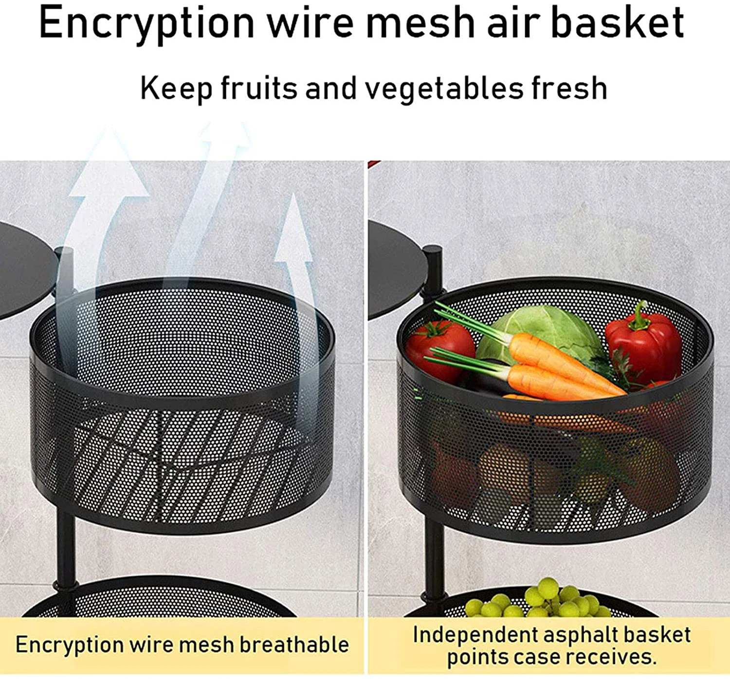 This Rolling Utility Cart is made of thick steel frame and plastic. Strong load-bearing capacity and durable. With 3/4/5-Tier large storage, perforated bottoms, it allows for numerous storage possibilities. Movable and lockable, with handles, casters, it can be used in the kitchen, bedroom and so on.