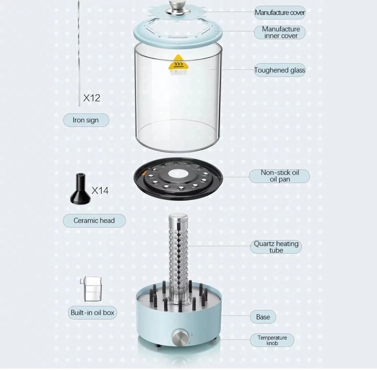 AUTOMATIC CONSTANT TEMPERATURE GRILLING: This product is easy to use, only need to open the summary to automatically grill. The built-in ceramic head can be firmly fixed, effectively ensuring that it will not fall during the grilling process, which is very convenient! VISIBLE GLASS COVER: Visible transparent high borosilicate tempered glass allows you to see the maturity of the meat, it can grill any food, such as corn, meat, hot dogs, for 3-5 people, suitable for family gatherings