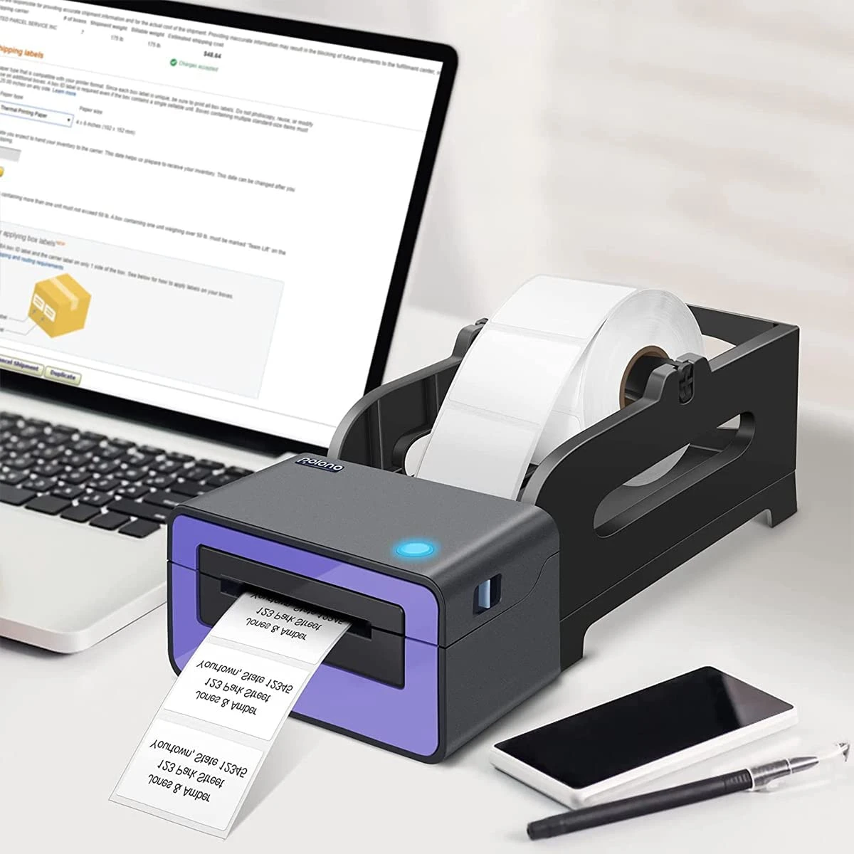 - [ Specifications ] 4″ x 6″ . 350 shipping labels per roll. Roll Diameter: 4.1”(105mm). Please make sure that the diameter of the built-in paper warehouse label Barcode printer is greater than 4.1” before purchasing. It is only suitable for thermal printers and NOT for laser or inkjet printers