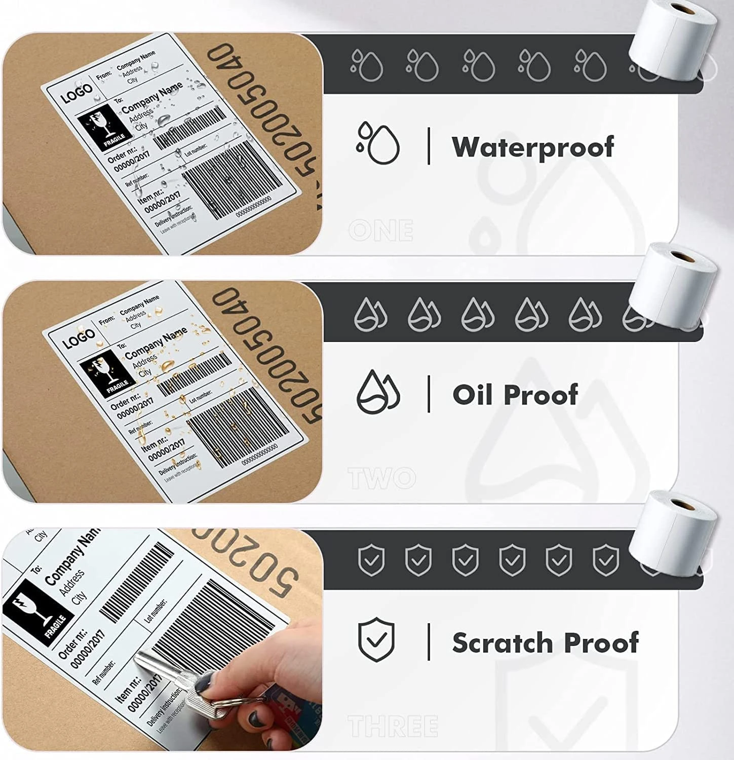 - [ Waterproof and Oil-proof ] Smudge-Free and Resists Scratches, Water, Dirt, Dust, and Grease. Blank 4×6 mailing label with the perforated line for easily peeling off.