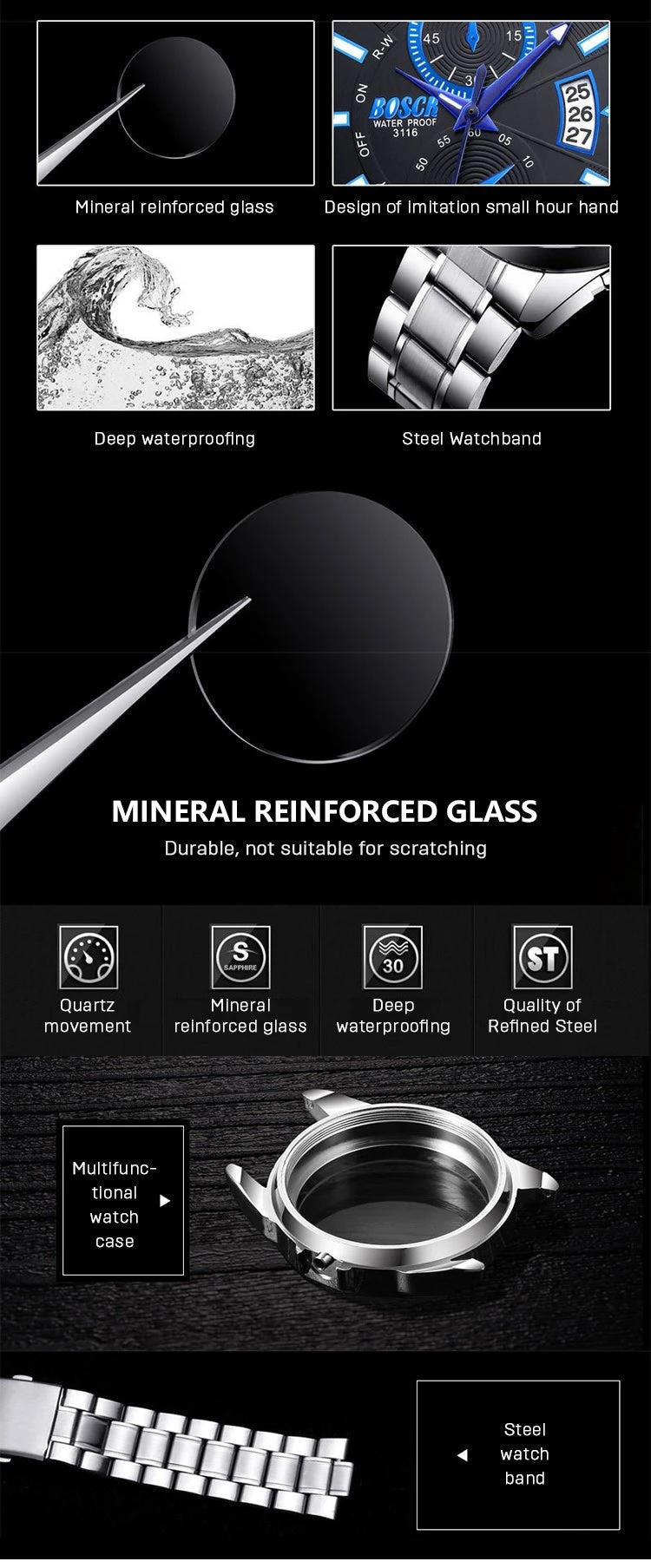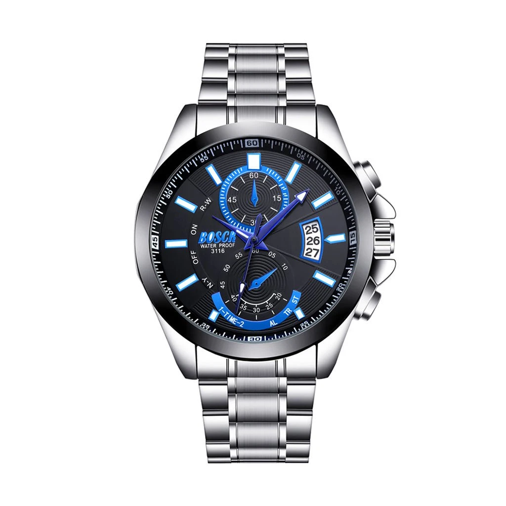 BOSCK Men’s Watch Calendar Sports Waterproof Calendar Large Dial Luminous Watch