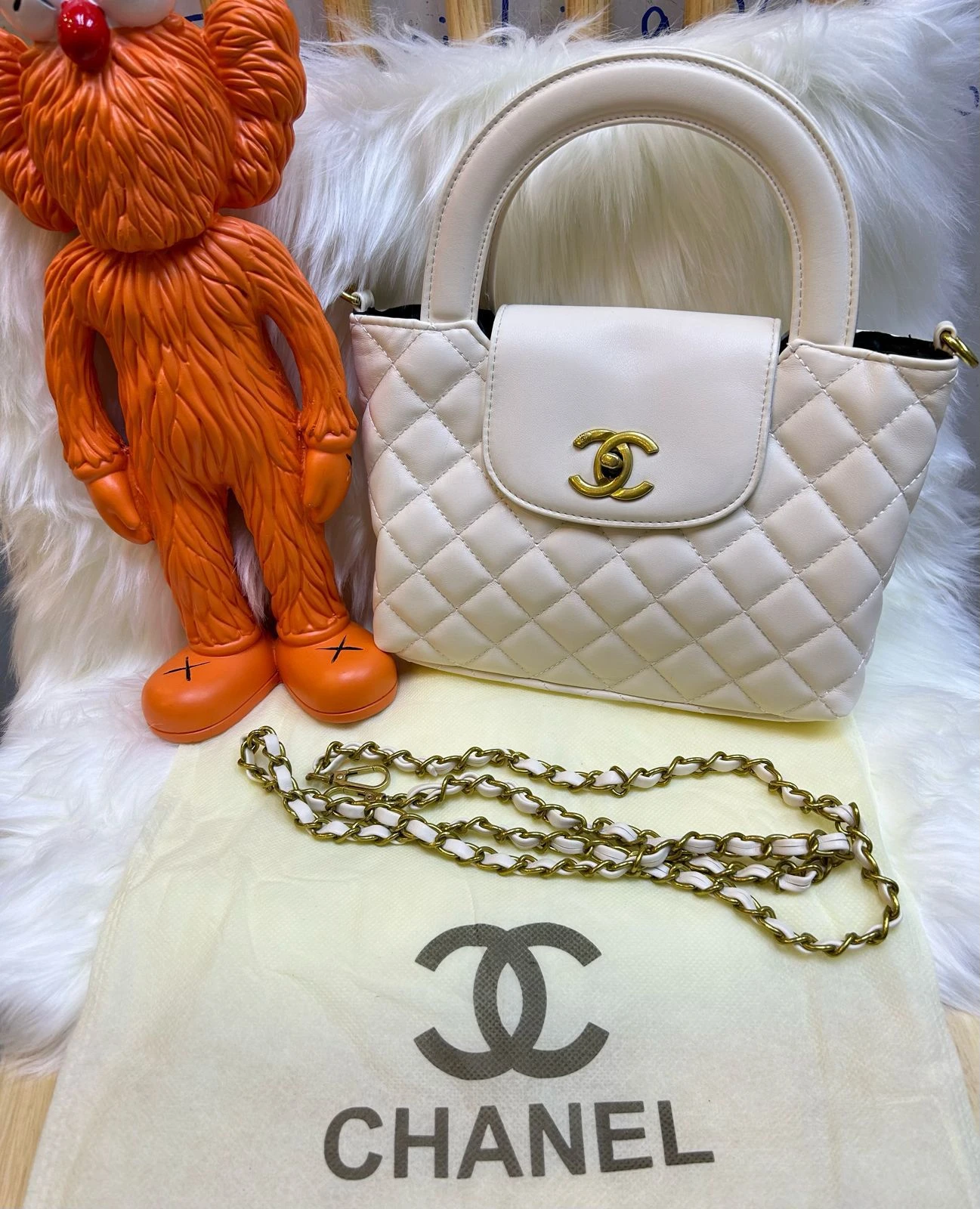 CH Small Kelly Shopper White Shiny Aged Calfskin Brushed Gold Hardware Bag