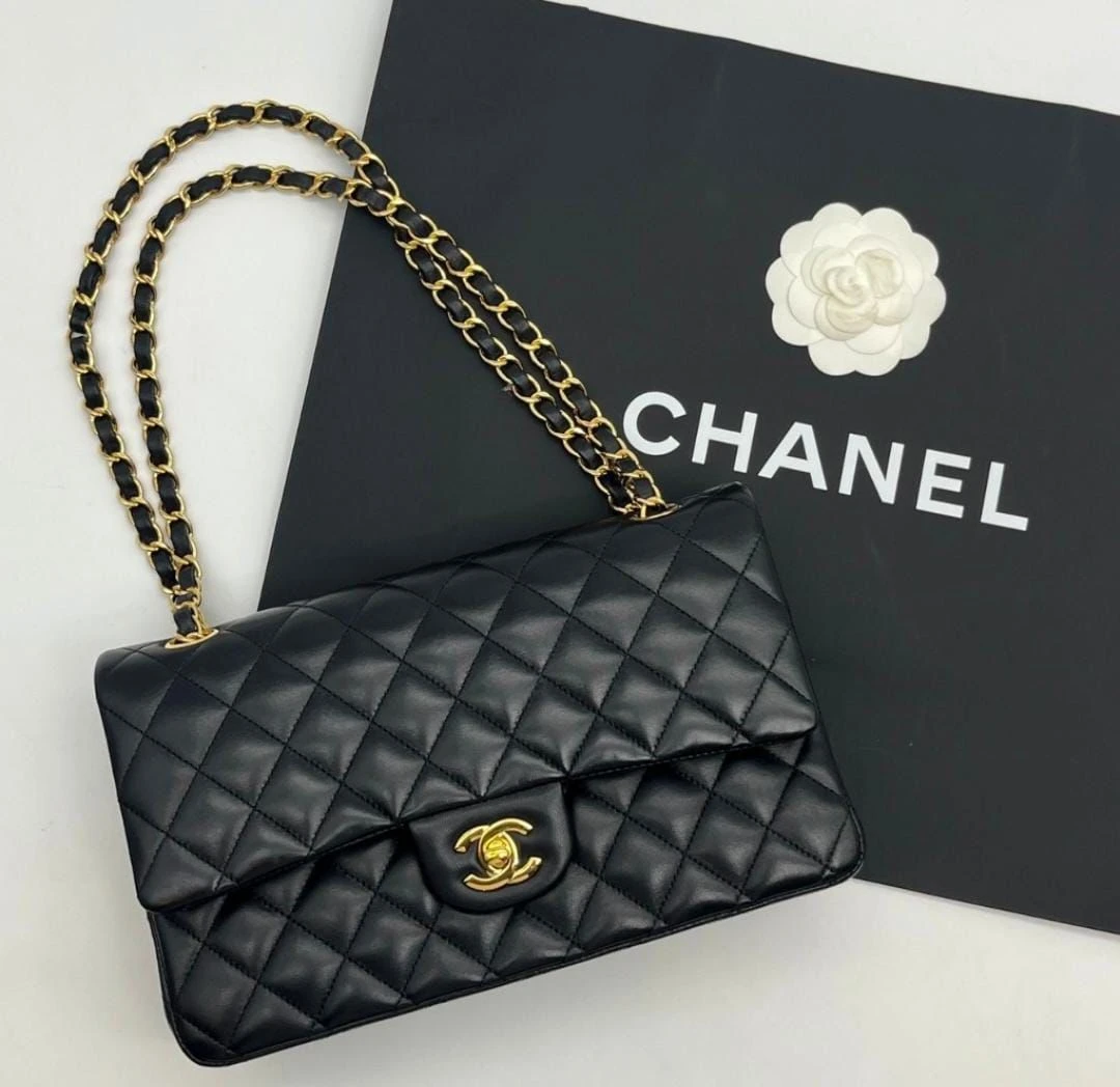 This is an authentic CHANEL Lambskin Quilted Medium Double Flap So Black. This stylish shoulder bag is crafted of diamond quilted luxurious lambskin leather. The bag features gunmetal chain link shoulder straps threaded with black leather and a gunmetal Chanel CC Mademoiselle turn lock. This opens the frontal flap to a leather interior. This is a marvelous shoulder bag, ideal for day or evening use, from Chanel!