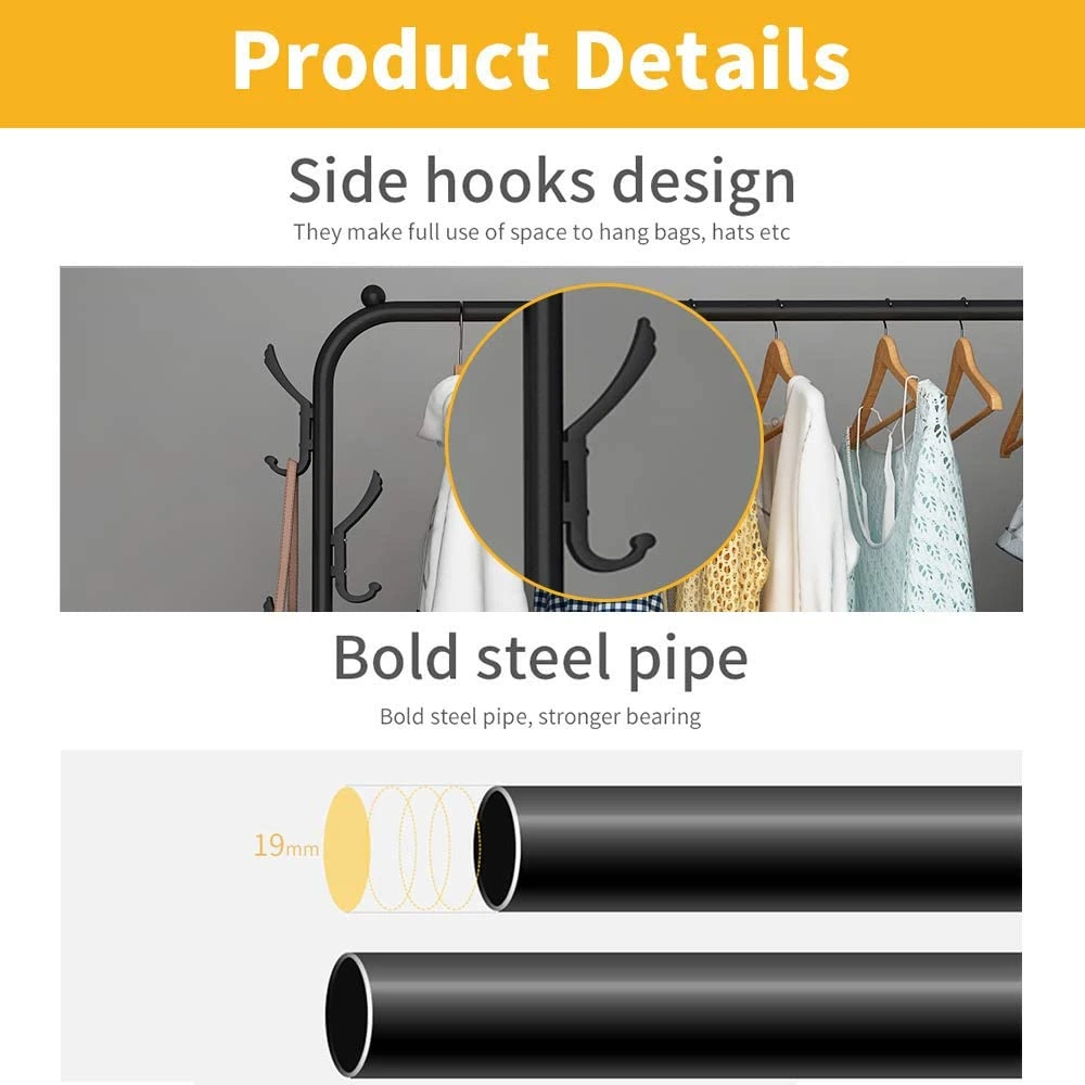 Modern design: This Modern minimalist style of clothing rack and its glossy black finish matches most spaces at home or at the workplace. It can also regard as a decorative piece in your house.