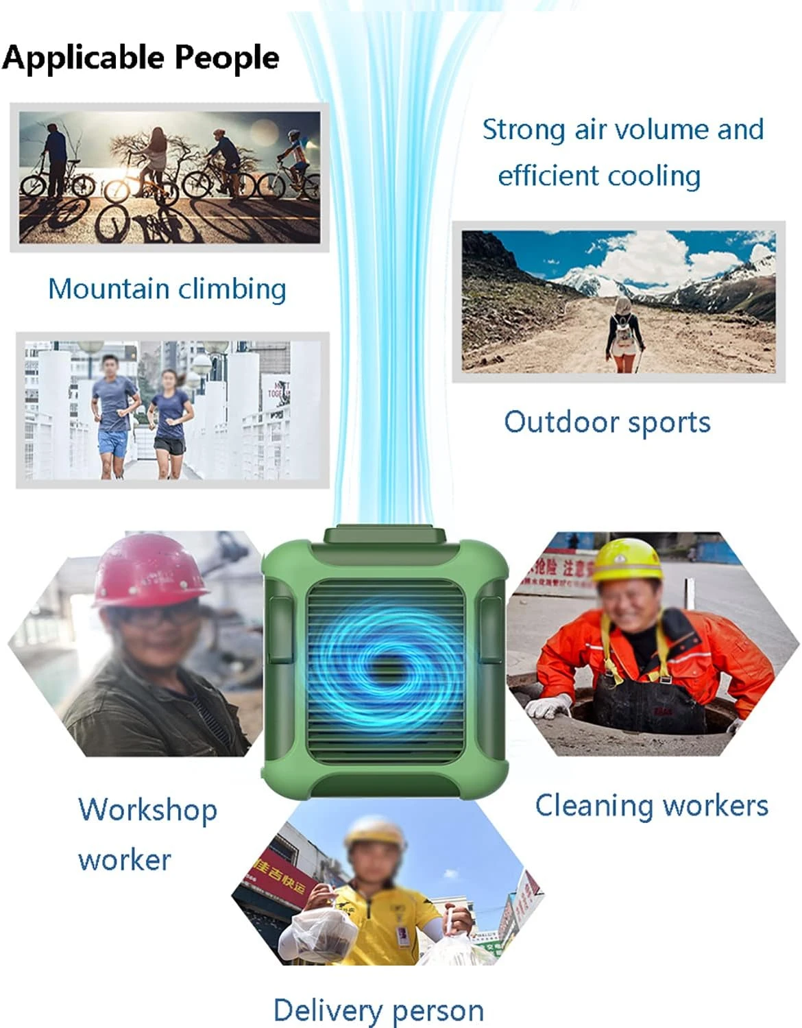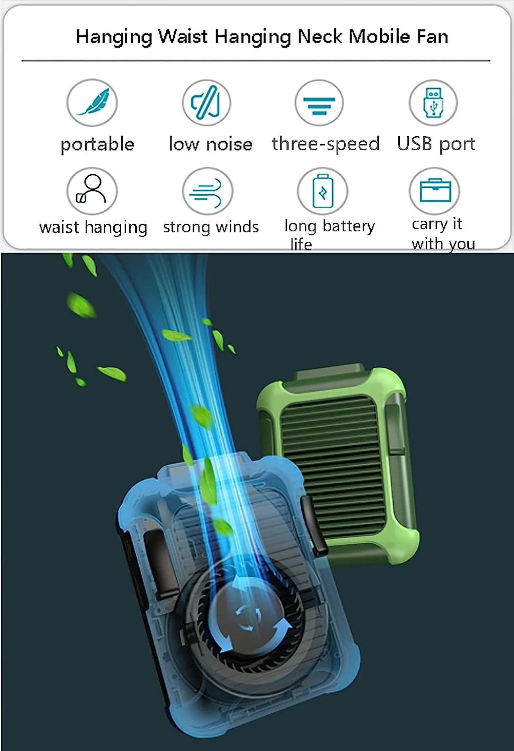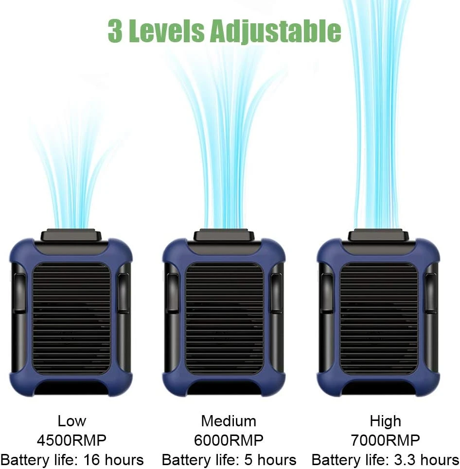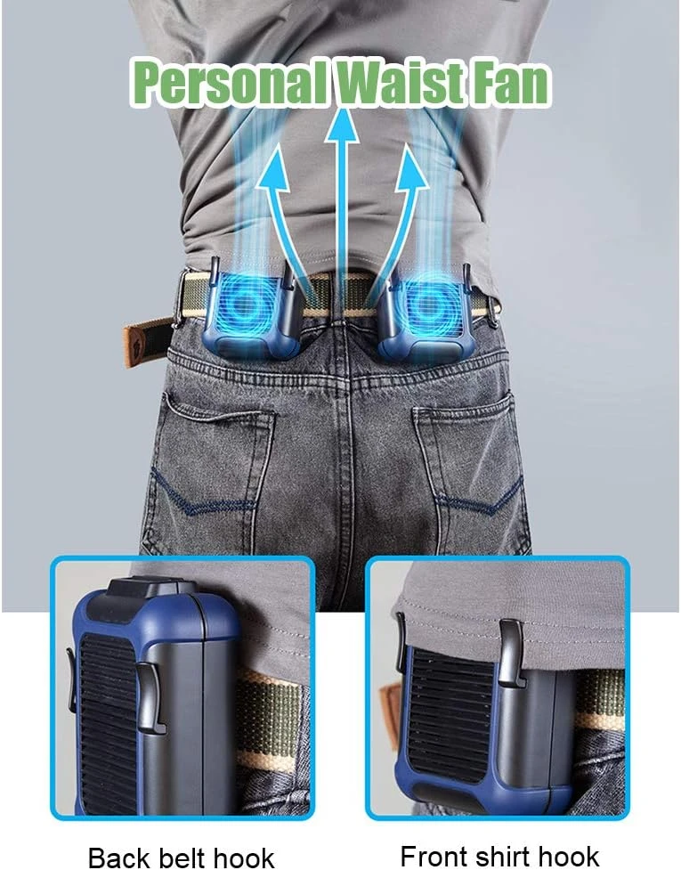 Wide application: simply attach this mini fan to your trouser belt or hang it around your neck and enjoy the cool wind. Ideal for outdoor activities (such as fishing, hiking, climbing, cycling, shopping), also ideal for people who need to work at high temperatures, such as: construction sites, kitchens, farms, warehouses, etc.