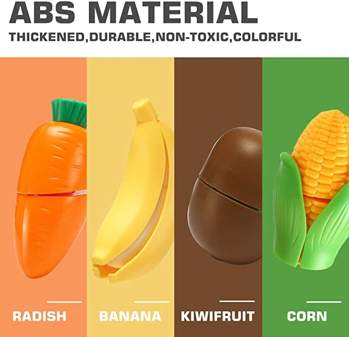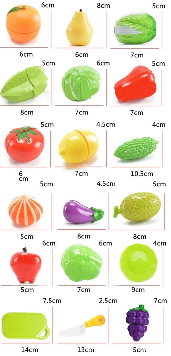 Realistic Design: Our Play food can match pieces together easily, which can be cut and played repeatedly. For children, fruits and vegetables are easy to cut.The “slicing” noise accompanying the cutting can bring endless fun to the children