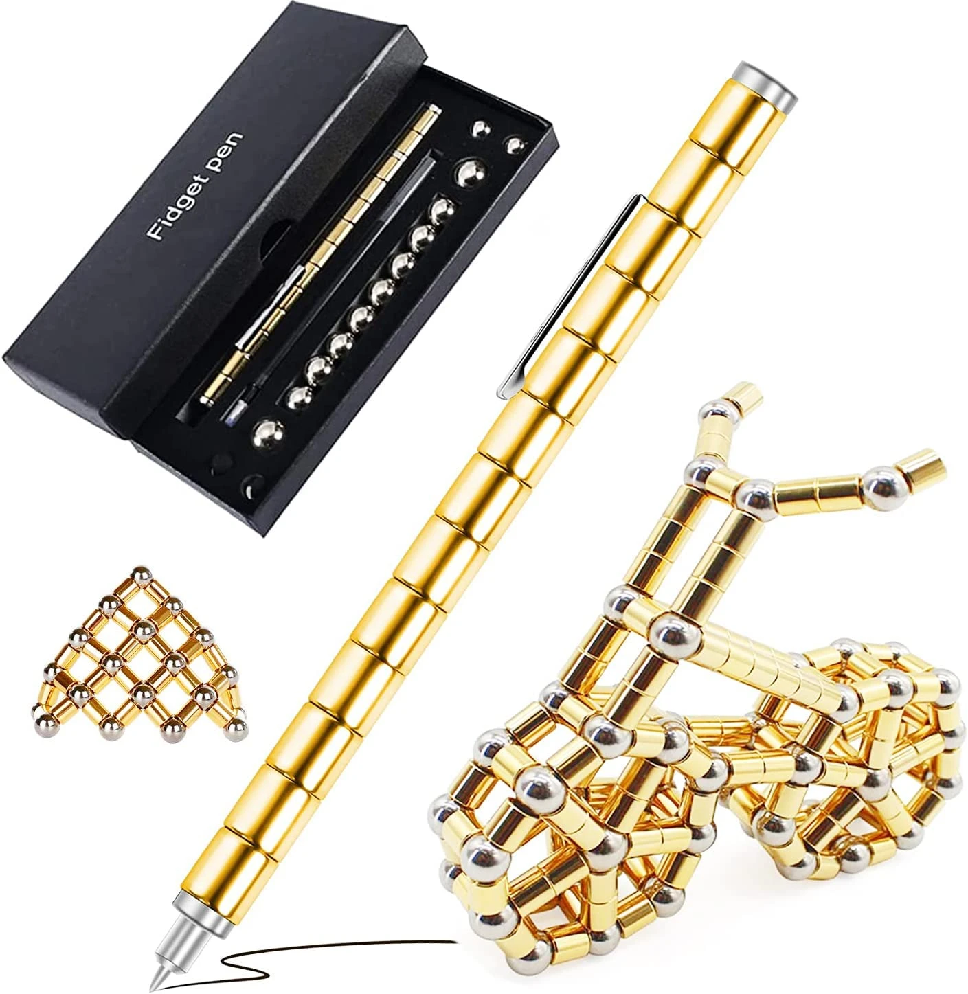 Multifunction Writing Instruments : This magnetic pen is not just a pen, also be a finger fidget toy. It can be rotated and transformed into a variety of creative, free combinations, multiple and diverse plays.