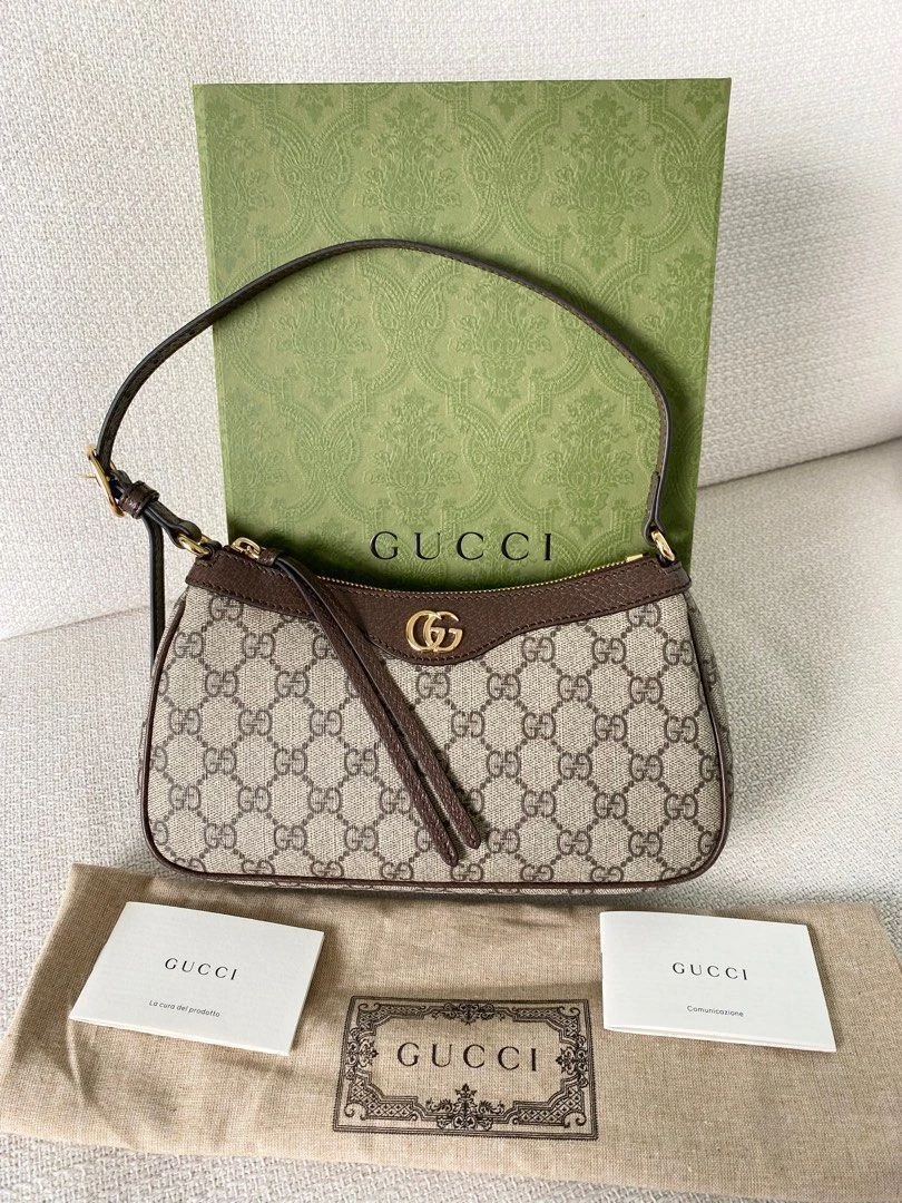 Iconic and timeless, this Ophidia small handbag from Gucci is designed with GG Supreme canvas, a leather trim, and Web stripe. Take note of the Double G, chain top handle, and an adjustable canvas shoulder strap.