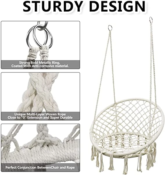- HANGING ROPE HAMMOCK SWING: Find comfort with a stylish hammock swing Hangs anywhere and easily relocates Great addition to Balconies, Decks, Backyards and more
