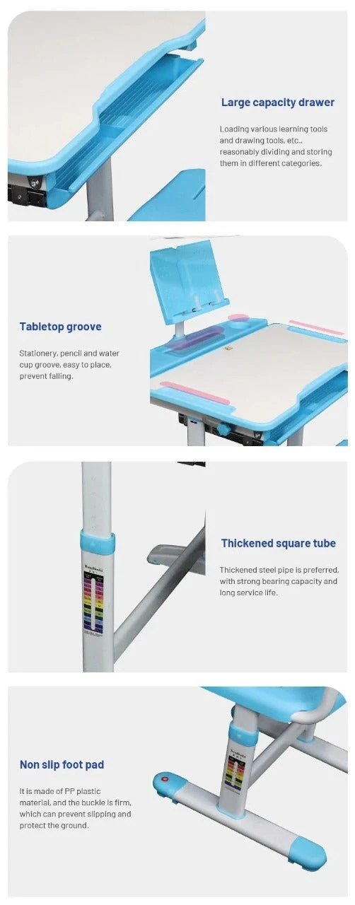 Easy Assembly and Adjustment : You can quickly assemble this desk set within 5 minutes with detailed instructional and labeled pieces. Ergonomic Height Adjustable Children Desk & Chair can grow as children grow, improve their study effectiveness.