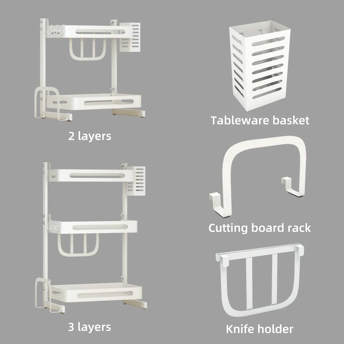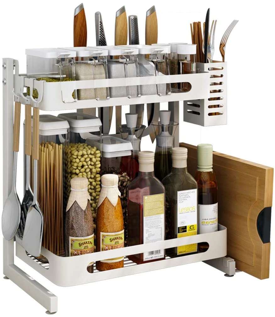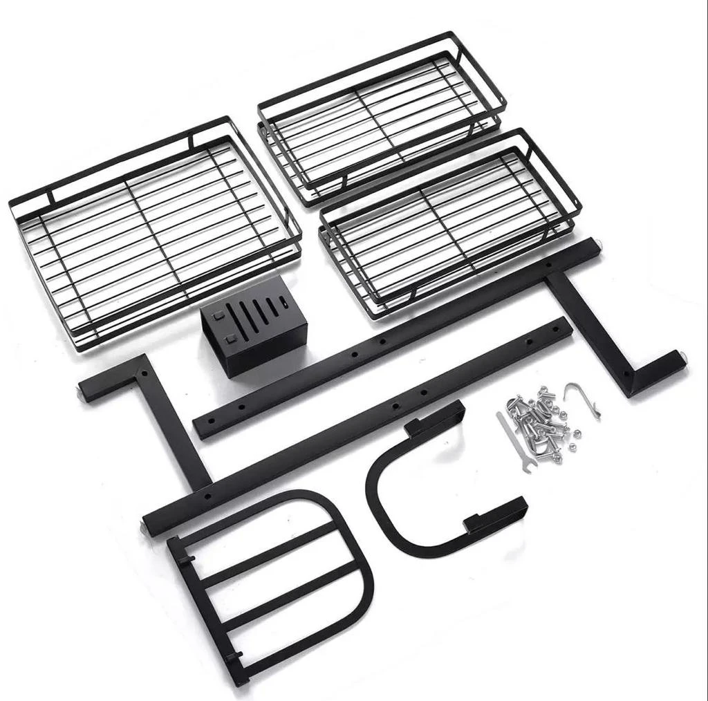 Package Includes: 1 x Spice Rack + 1 x Chopsticks Cage + 1 x Knife Holder + 1 x Chopping Board Rack + 3 x Hooks
