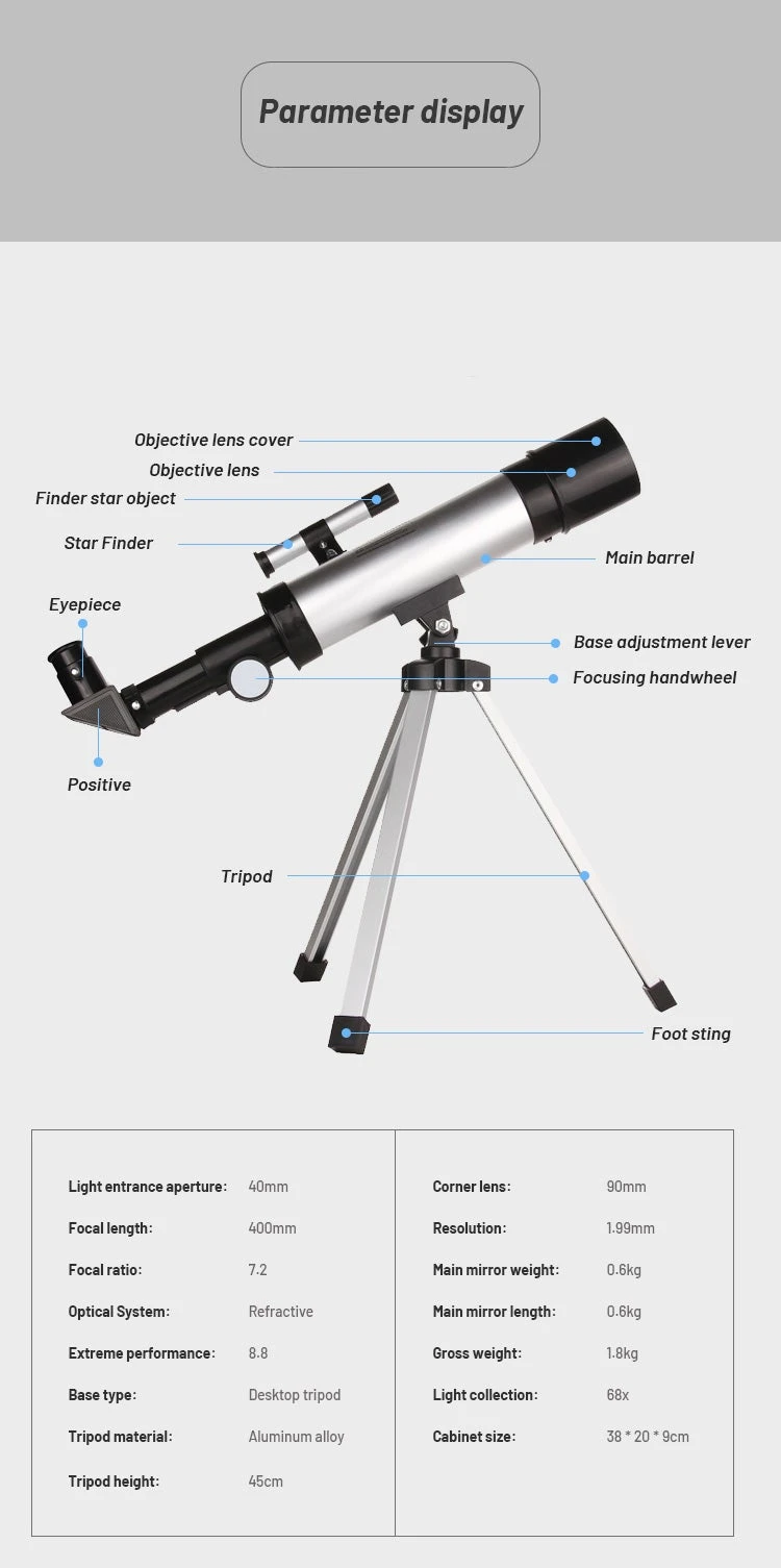 Positive Imaging: This telescope turning the original inverted vision into a positive direction, takes you to view in all directions in a positive direction. The 5×18 finder scope to help you quickly and accurately find the object observation, more suitable for children and beginners.