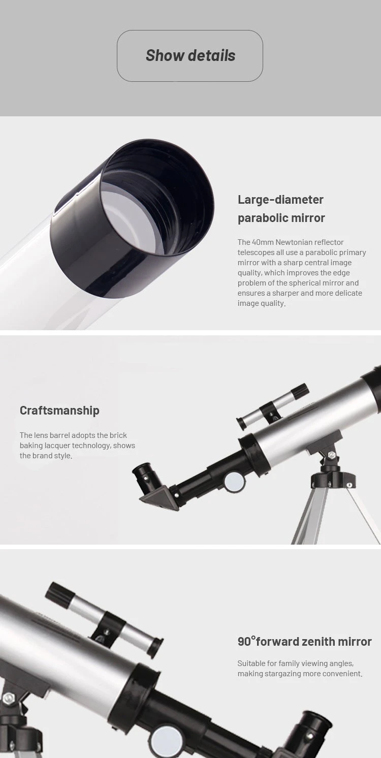 High-quality optical components: The fully coated optical glass lenses have high transmittance and high resolution, sharp and clear imaging and protect your eyes. The focal length is 360mm.f/7, and the aperture is 50mm. The 90° zenith mirror has high light transmittance and is easy to operate.