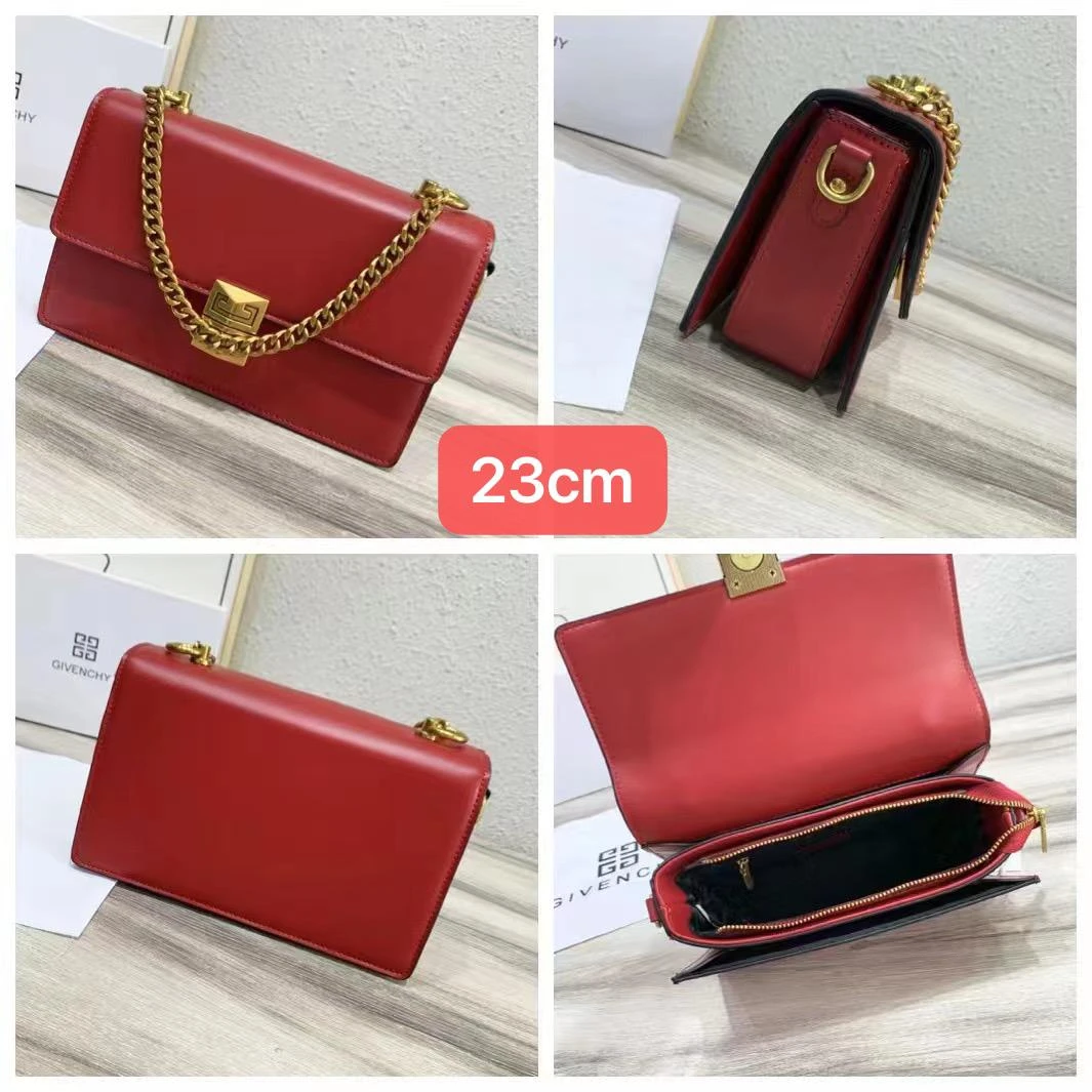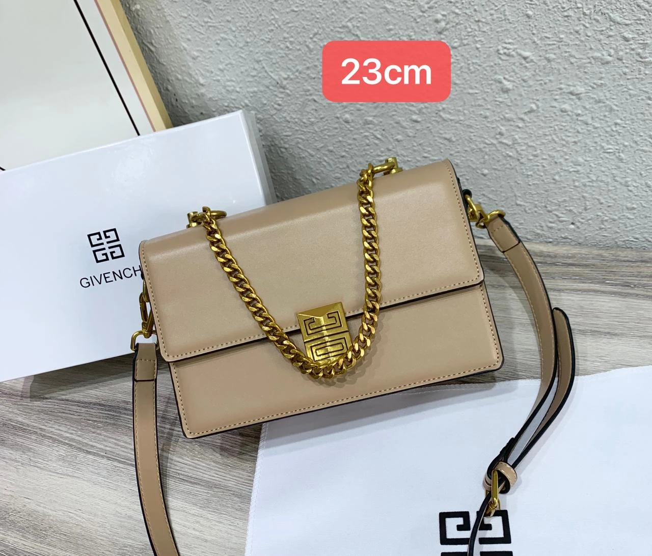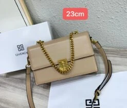This is an authentic leather chain handle bag By Givenchy with gold hardware and shoulder strap.