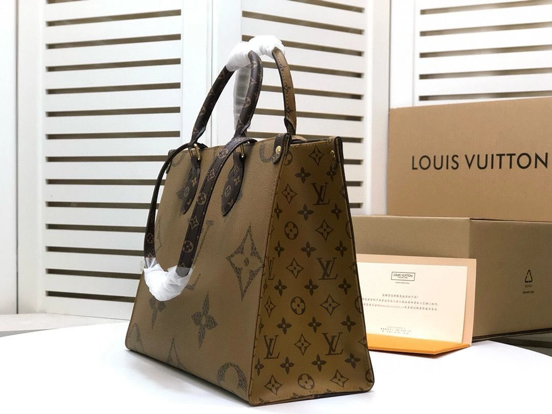The name says it all: the Onthego MM takes care of business or shopping, with plenty of room for a busy womanโs essentials. With classic Monogram canvas on one side and Monogram Reverse on the other. Twin Toron top handles and two shoulder straps offer several different carry styles, for extra versatility.