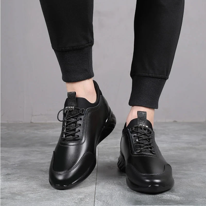 Italian style height increasing sports shoes for men. This design is finished in top quality natural grain leather that is easy to clean. The interior is finished with fine leather and flexible and shock-resistant rubber sole. These shoes are best styled with chinos, jeans, or shorts. Masaltos.com recommends cleaning the shoes with a semi-damp cloth using circular motions. After cleaning, let the shoes dry for a few minutes then apply cream to the tone. Finish with a dry cloth to shine.
