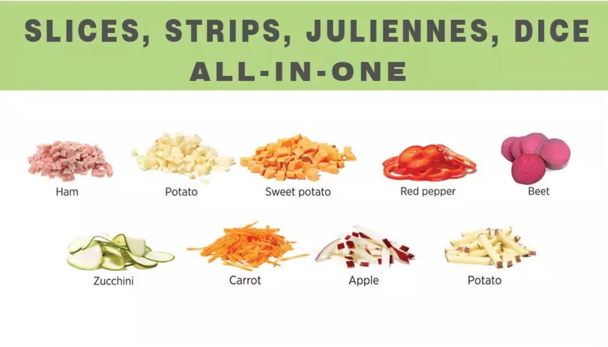 - ▶【CONVENIENT OPERATION】According to the installation tutorial of the chopper vegetable cutter provided. You can finish the installation in one minute,put the washed vegetables into the feeding chute. If the size is too large,you need to divide it into the right size in advance and then put it in,then you can cut out the shape you want.