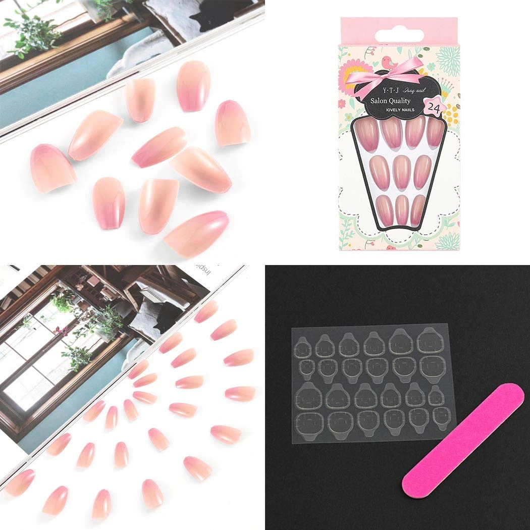 SIZE : 24pcs set full nail design false nail tips with free nail glue sticker and mini nail file. You can choose the most suitable false nail for yourself. It’s easy to trim and file them in any length and shape you like.