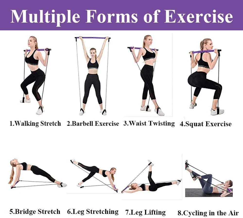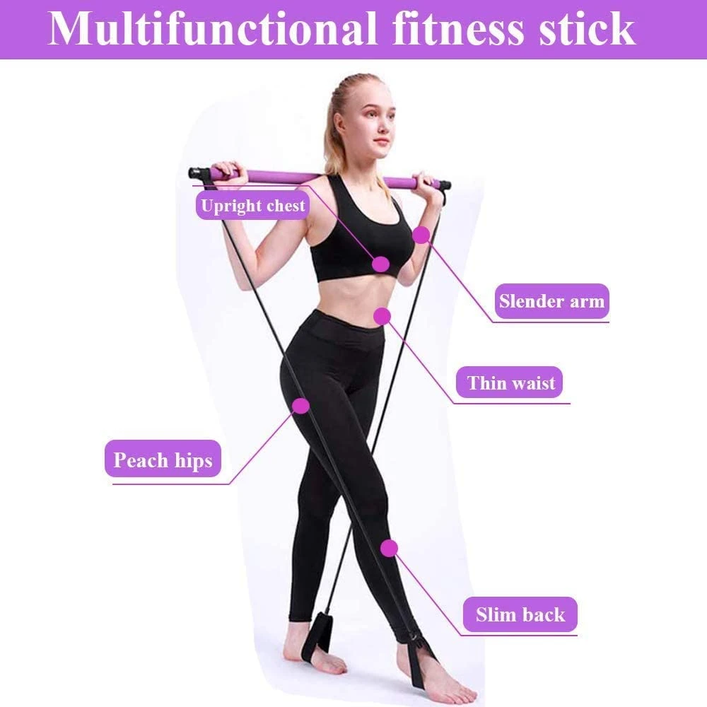 VERSATILE GYM EQUIPMENT FOR HOME: Our portable Pilates bar kit with resistance band could be used as thigh workout equipment for women, arm exercise equipment, butt workout equipment, squat bar machine, etc. Perfect exercise equipment for home, ideal workout gear for women and men. to do yoga, stretching exercises, fitness, Pilates, strength training, fitness exercises and much more in the comfort of your home to help reach your fitness goals.