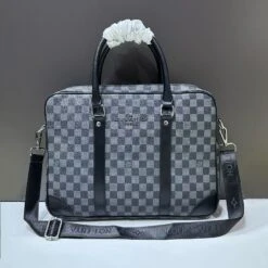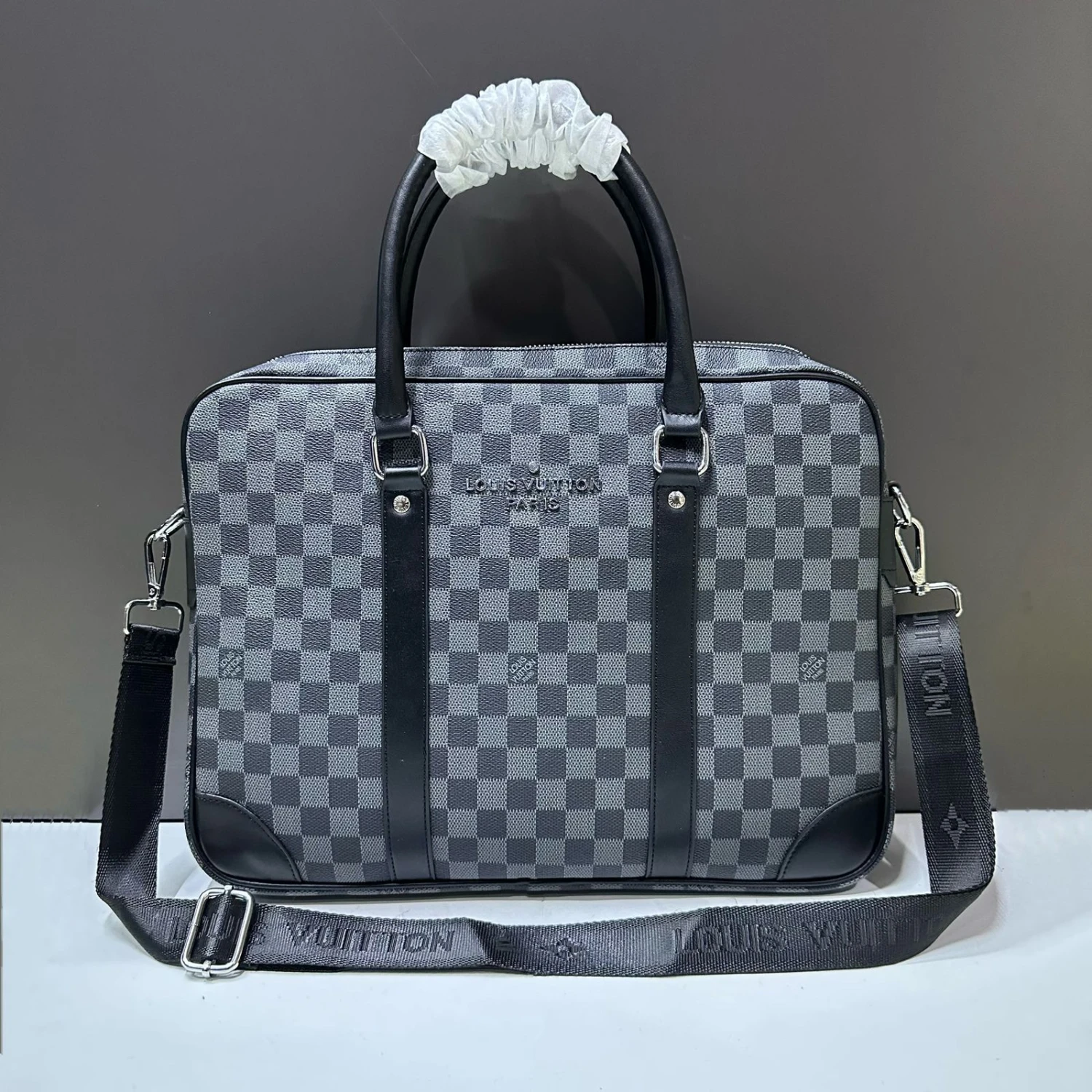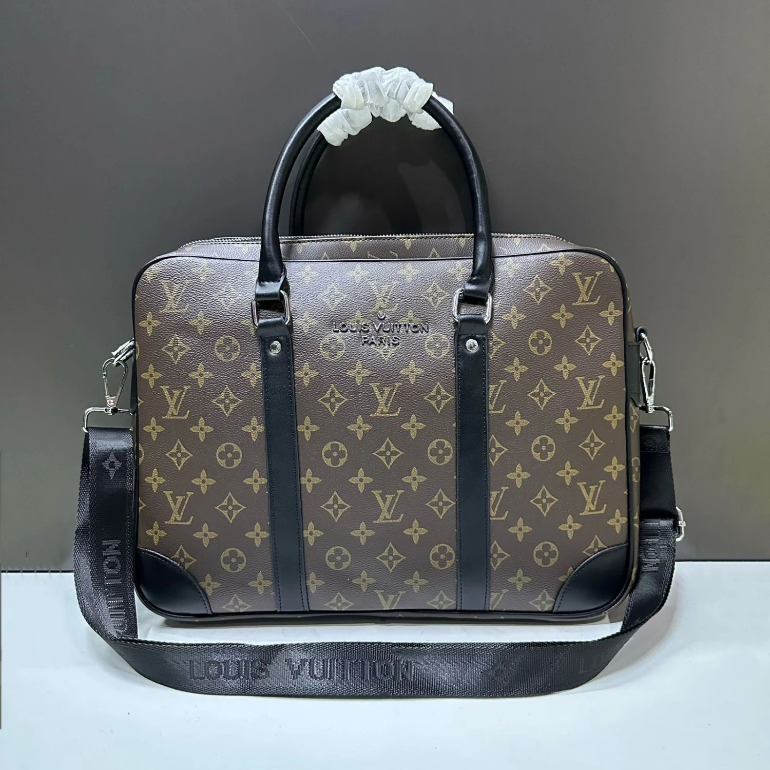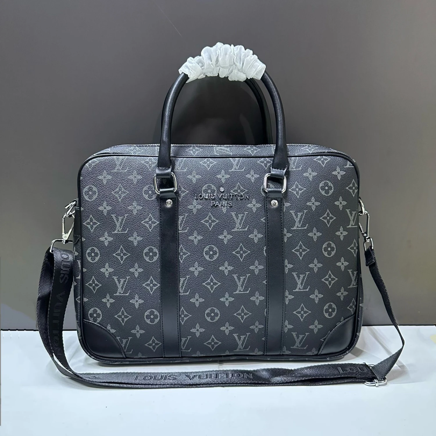 The timeless colorway of Monogram Eclipse canvas perfectly complements the pure lines of this Porte-Documents Voyage PM briefcase. Leather top handles, side bands, and reinforced corners structure the bagβs design. A removable and adjustable strap and two top handles give carry options.