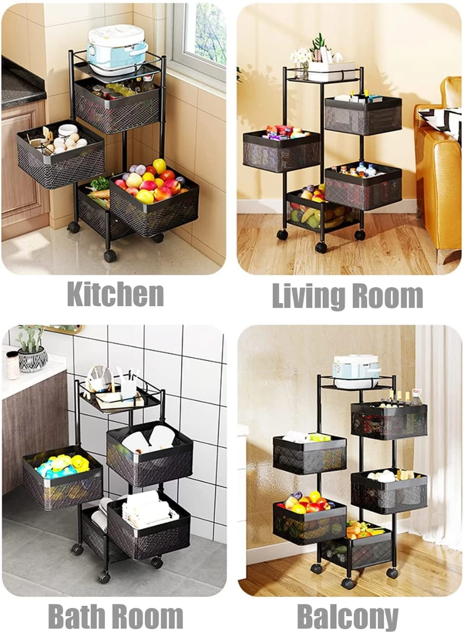 - Kitchen square storage shelf rotatable multi-layer fruit and vegetable rack with wheels movable large-capacity shelf