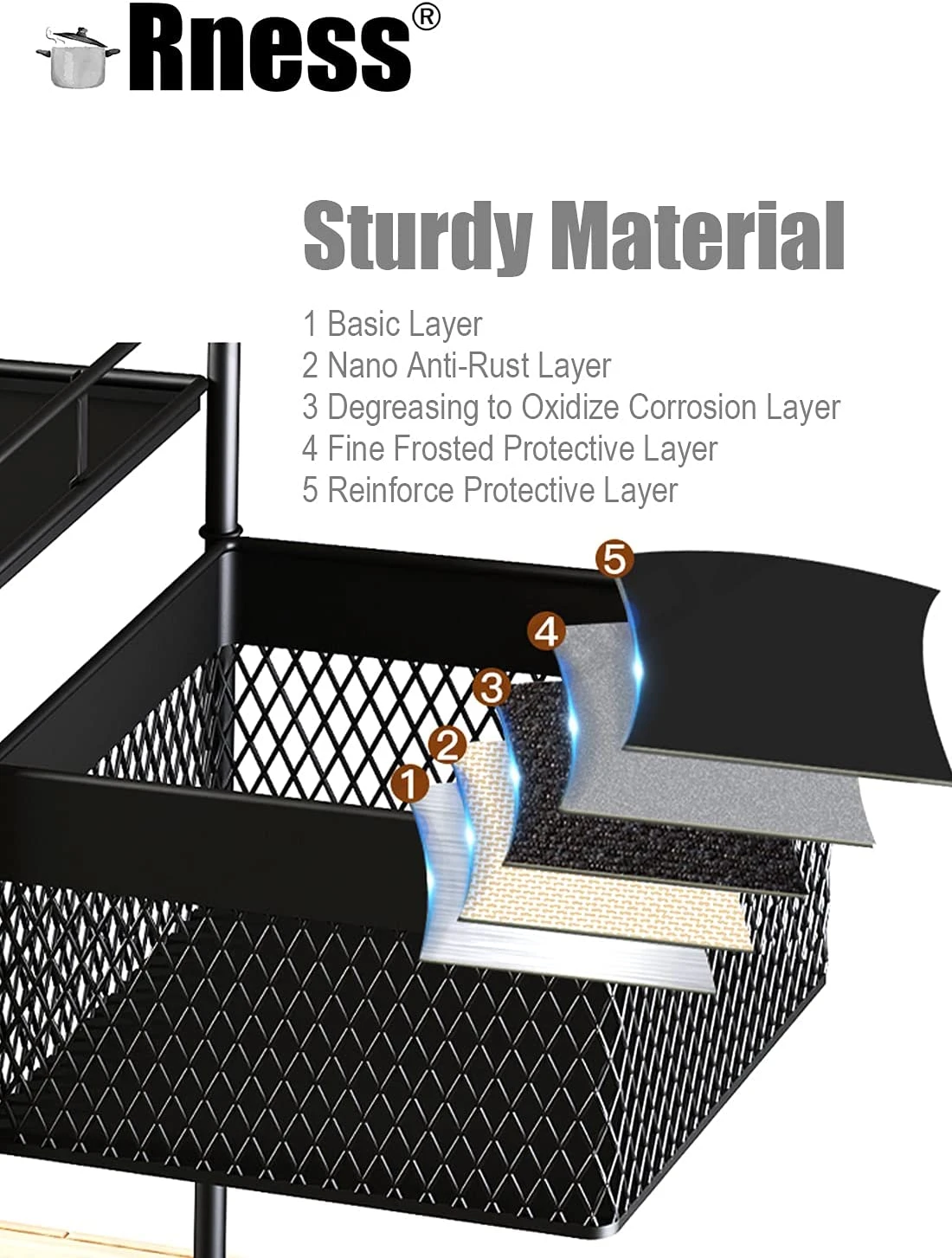 - This Rolling Utility Cart is made of thick steel frame and plastic. Strong load-bearing capacity and durable. With 4/5-Tier large storage, perforated bottoms