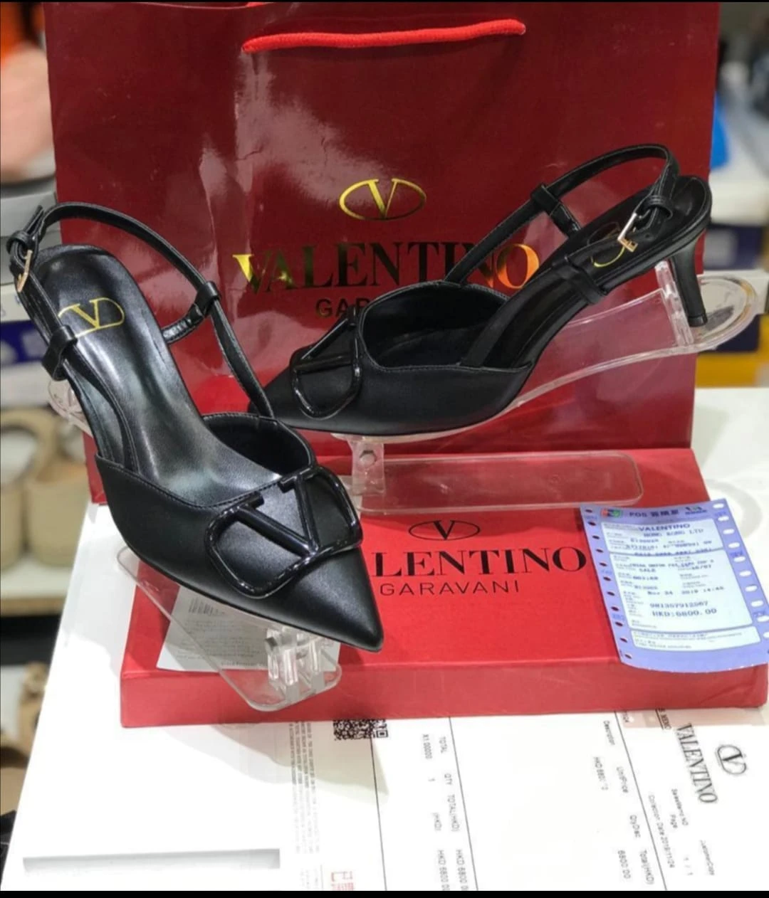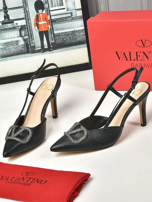 Valentino’s sandals are rendered in leather and feature a sleek pointed-toe silhouette. The uppers are adorned with a tonal VLogo for a signature touch, and the slingbacks are added as effortless fasteners. The kitten heels will go perfectly with midi dresses and skirts.