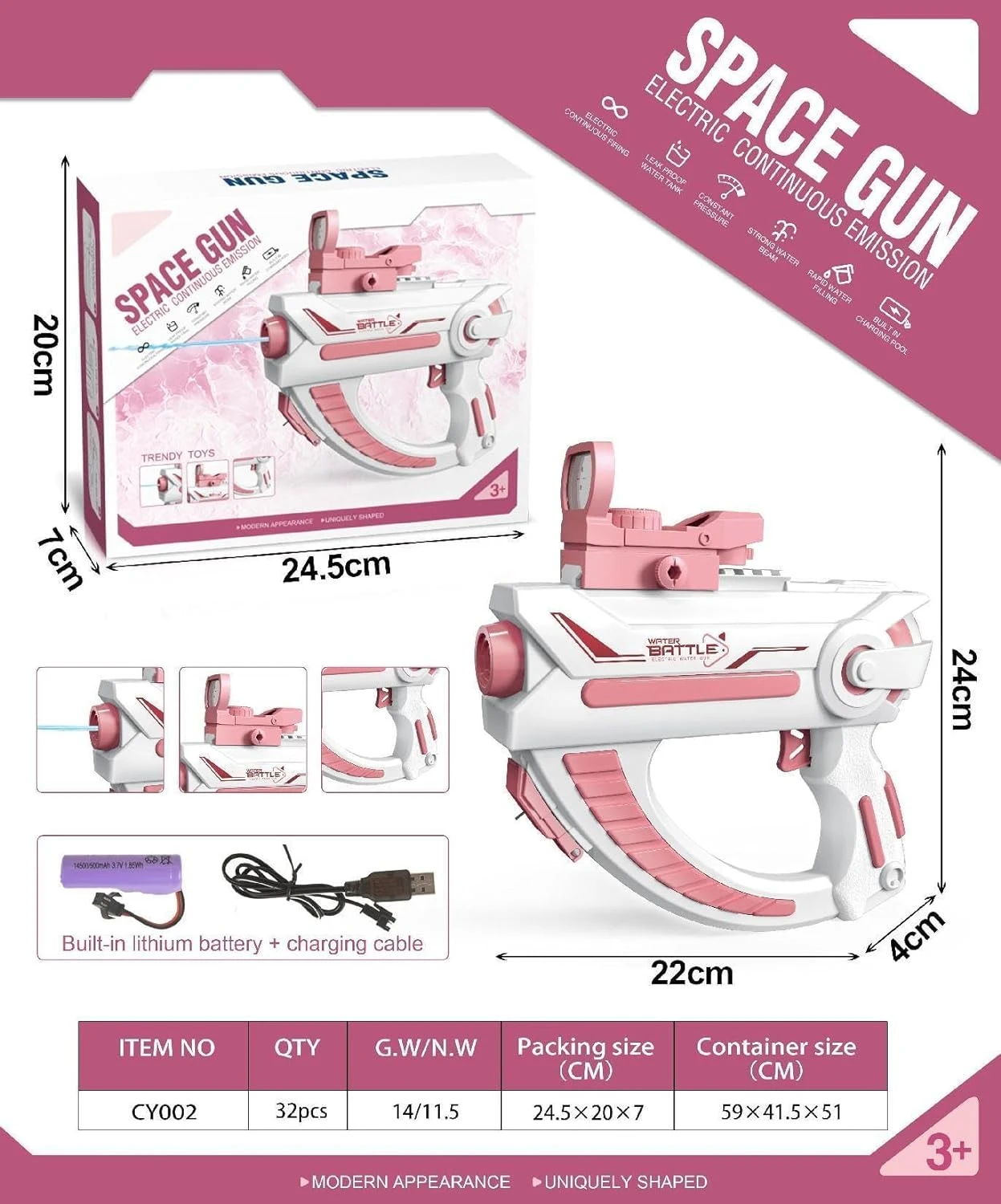 - Experience high-pressure water play with an automatic water gun.