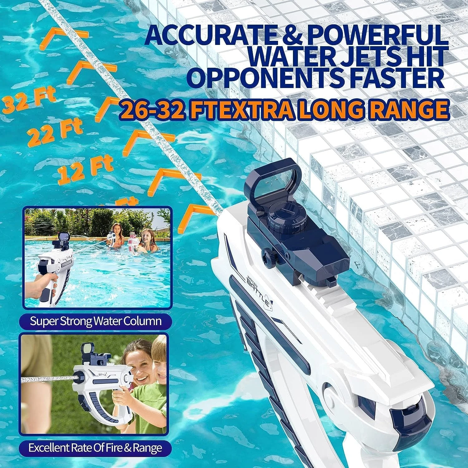 - Fast firing speed adds thrill to every water fight.