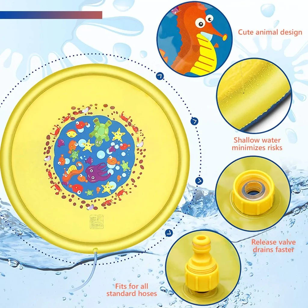 Growing Through Play: This sprinkler mat is an educational baby swimming pool. Your child can learn bright colors and count the number of marine life while playing. This will help children to be excited about some knowledge in the game learning!