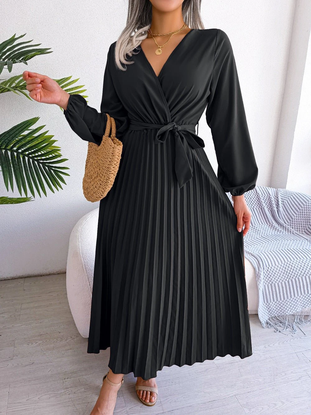 Women’s Maxi Dress Long Sleeve Pleated Dress